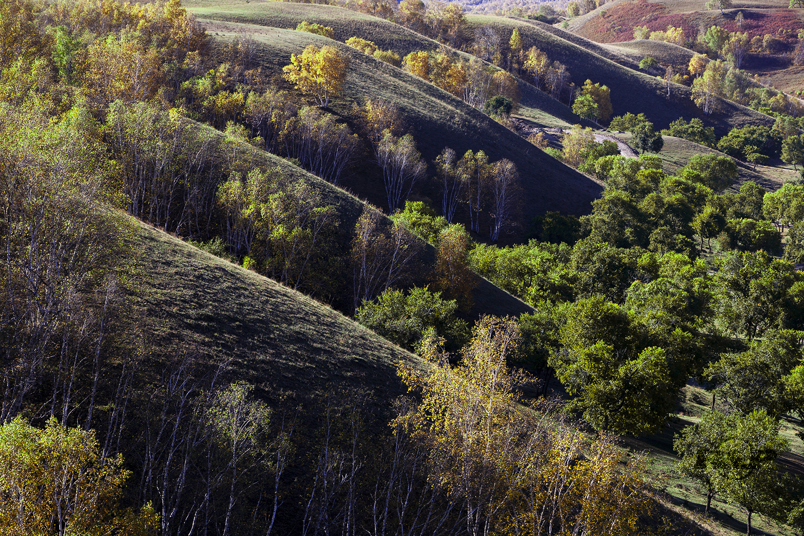 1、沿着小山坡向右走,一直绕着村庄后面,光线就会由逆光变成侧逆光,会有不同的效果。不过在旅游高峰期,可能很难找到一个好的位置,因为好位置上都站满了人,支起的三角架如同树林一般密集。