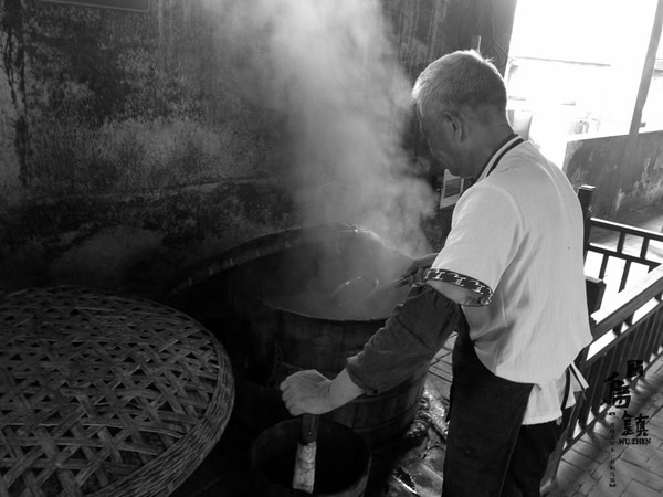 三白酒作坊位于浙江省桐乡市乌镇,是一座传承百年的传统酒作坊,其历史可追溯至清朝同治年间。作坊原名高公生糟坊,采用白米、白面、白水为原料,遵循浸米、蒸饭、糖化发酵、压榨、蒸馏等七道传统工序手工酿制三白酒。酒品以醇厚清甜、余香不绝著称,现主要生产55℃三白酒、12℃白糯米酒及4℃甜白酒。